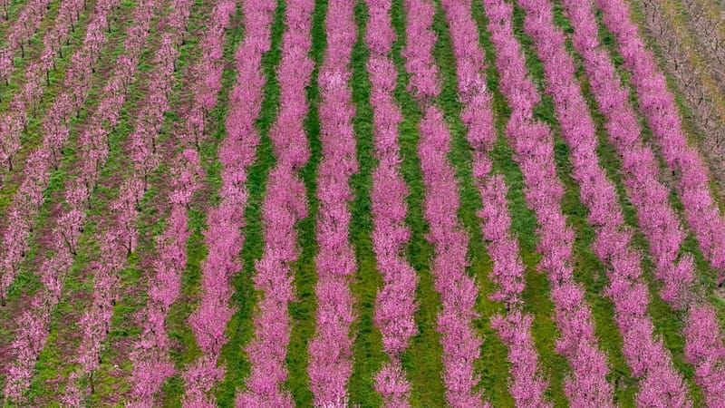 Bezaubernde rosa Landschaft der blühenden Pfirsichbäume lockt Blogger und Influencer nach Veria